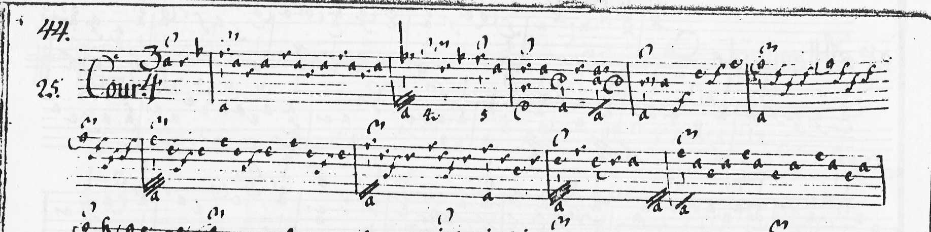 However, we just happen to have a fingering in an addendum to a hand-copied version of Le Sage de Richée's instructions found in Ms.Wroclaw 2002 which suggests the following fingering for exactly this sort of passage. It is called "an example of good and proper fingering":